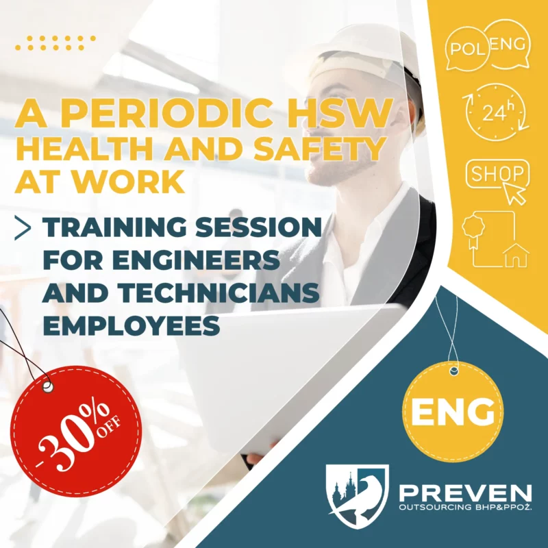 Check our online course „A periodic HSW (Health and Safety at Work) training session for engineers and technicians employees” provided by Preven!