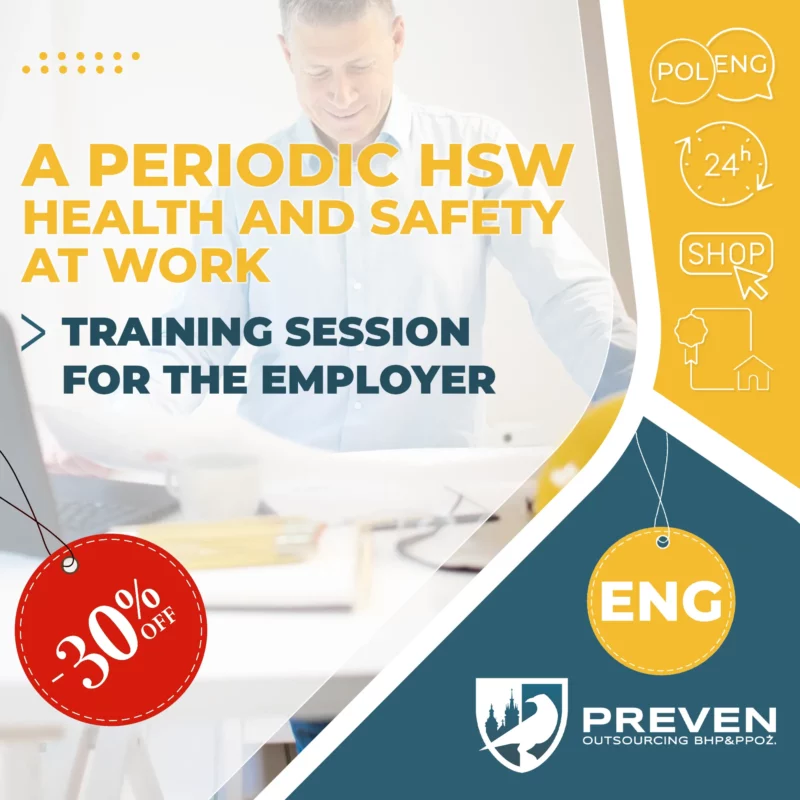 As an employer, maintaining a safe and compliant workplace is a key responsibility. Our „Periodic HSW (Health and Safety at Work) Training for Employers” is designed to equip you with the knowledge and skills needed to uphold high standards of health and safety within your organization. This training ensures that you are well-prepared to manage risks, implement safety protocols, and foster a culture of safety that protects your employees and your business.