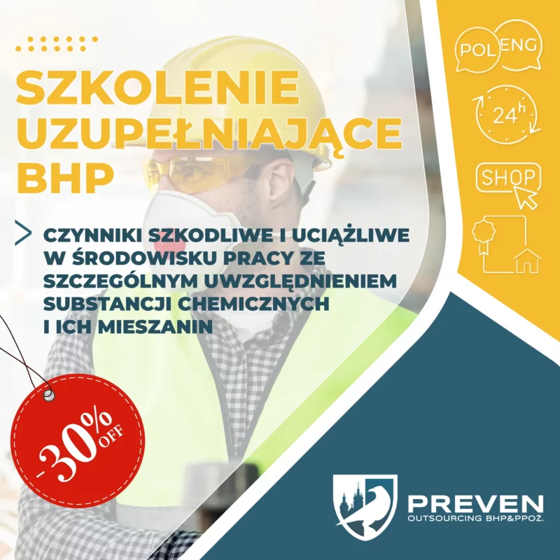 Bezpieczeństwo w miejscu pracy to nie tylko obowiązek, ale i fundament efektywnej pracy każdego zespołu. Nasze szkolenie online „Czynniki szkodliwe i uciążliwe w środowisku pracy ze szczególnym uwzględnieniem substancji chemicznych i ich mieszanin” to kluczowy krok w kierunku zapewnienia zdrowia i ochrony pracowników. To szkolenie, przygotowane przez ekspertów, zapewnia wszechstronną wiedzę i praktyczne umiejętności, które pomogą w identyfikacji, ocenie i zarządzaniu zagrożeniami związanymi z czynnikami szkodliwymi w miejscu pracy.