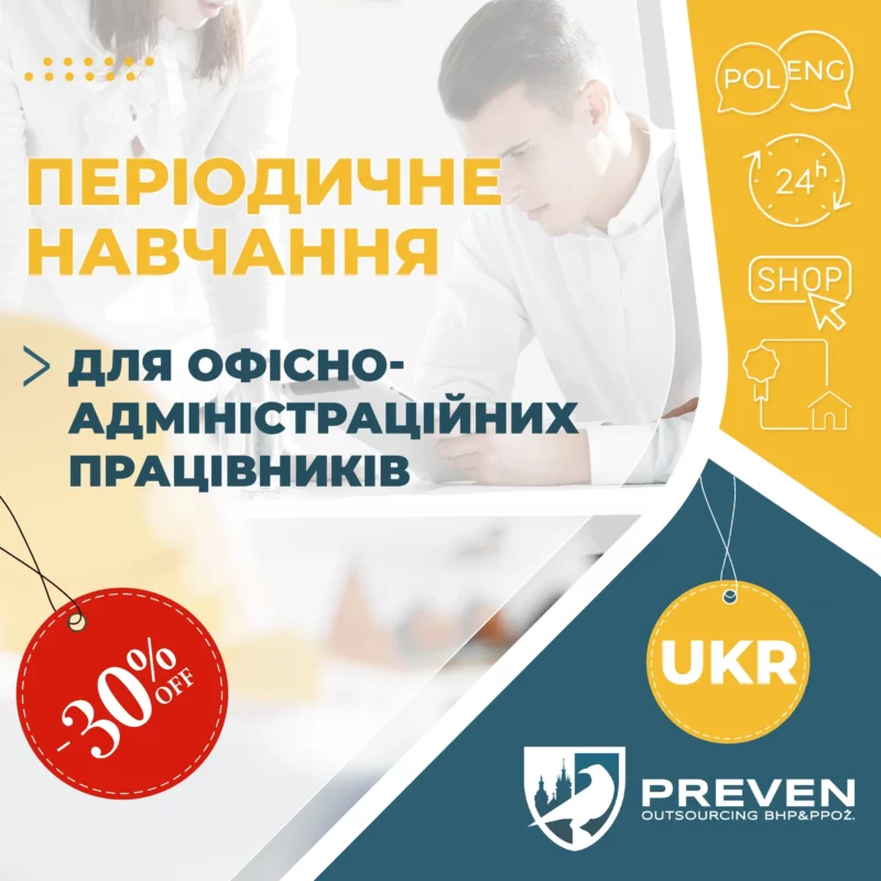 In any office environment, safety is just as important as productivity. Our „Periodic HSW (Health and Safety at Work) Training for Administrative Employees” is designed to keep your workplace safe and compliant with the latest health and safety regulations. This training session provides crucial updates and refreshers on safety protocols, helping you recognize potential hazards and maintain a secure office environment.